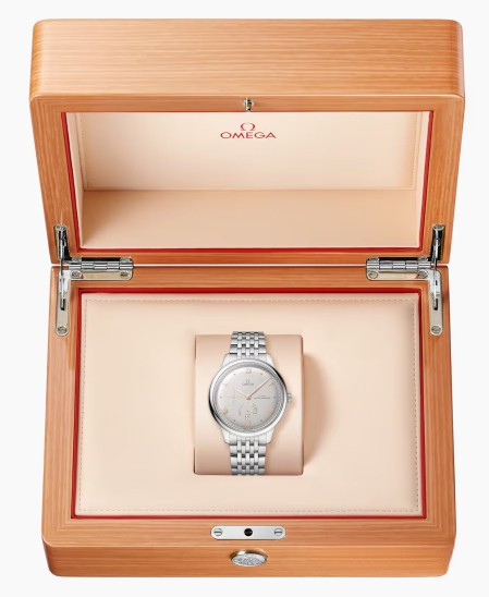 Часы Omega De Ville Prestige Automatic 41 представлены в корпусе размером 41 х 10.8 мм из нержавеющей стали водонепроницаемостью 30 метров. Внутри корпуса установлен автоматический механизм, Калибр 8810, обладающий запасом хода 55 часов. На серебристом циферблате отображаются часы, минуты, секунды, дата, запас хода. Часы поставляются на браслете из нержавеющей стали.