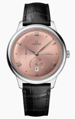 Часы Omega De Ville Prestige Automatic 41 представлены в корпусе размером 41 х 10.8 мм из нержавеющей стали водонепроницаемостью 30 метров. Внутри корпуса установлен автоматический механизм, Калибр 8810, обладающий запасом хода 55 часов. На розовом циферблате отображаются часы, минуты, секунды, дата, запас хода. Часы поставляются на ремешке из кожи аллигатора с застежкой из нержавеющей стали.