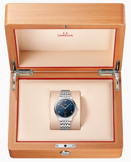 Часы Omega De Ville Prestige Small Seconds 41 представлены в корпусе размером 41 х 10.8 мм из нержавеющей стали водонепроницаемостью 30 метров. Внутри корпуса установлен автоматический механизм, Калибр 8802, обладающий запасом хода 55 часов. На синем циферблате отображаются часы, минуты, секунды, дата. Часы поставляются на браслете из нержавеющей стали.