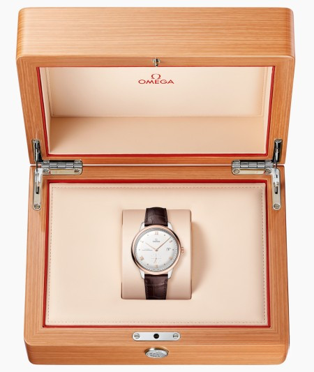 Часы Omega De Ville Prestige Small Seconds 41 представлены в корпусе размером 41 х 10.8 мм из нержавеющей стали и розового золота 18к водонепроницаемостью 30 метров. Внутри корпуса установлен автоматический механизм, Калибр 8802, обладающий запасом хода 55 часов. На серебристом циферблате отображаются часы, минуты, секунды, дата. Часы поставляются на ремешке из кожи аллигатора с застежкой из нержавеющей стали.