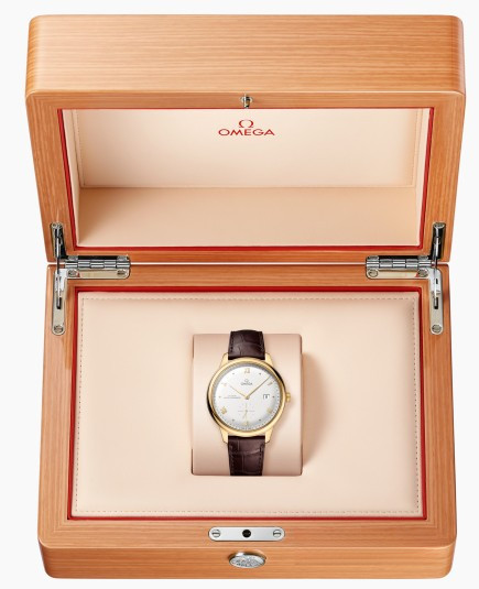 Часы Omega De Ville Prestige Small Seconds 41 представлены в корпусе размером 41 х 10.8 мм из желтого золота 18к водонепроницаемостью 30 метров. Внутри корпуса установлен автоматический механизм, Калибр 8802, обладающий запасом хода 55 часов. На серебристом циферблате отображаются часы, минуты, секунды, дата. Часы поставляются на ремешке из кожи аллигатора с золотой застежкой.