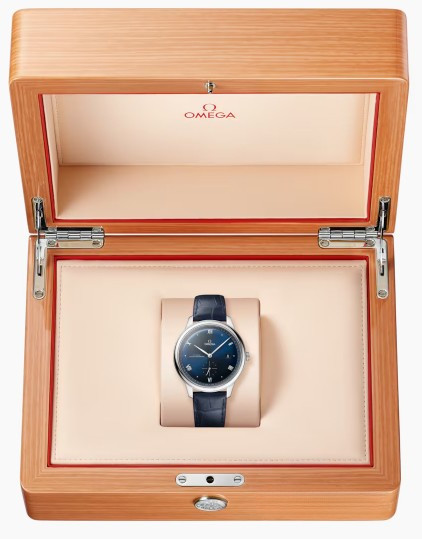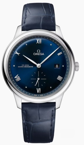 Часы Omega De Ville Prestige Small Seconds 41 представлены в корпусе размером 41 х 10.8 мм из нержавеющей стали водонепроницаемостью 30 метров. Внутри корпуса установлен автоматический механизм, Калибр 8802, обладающий запасом хода 55 часов. На синем циферблате отображаются часы, минуты, секунды, дата. Часы поставляются на ремешке из кожи аллигатора с застежкой из нержавеющей стали.