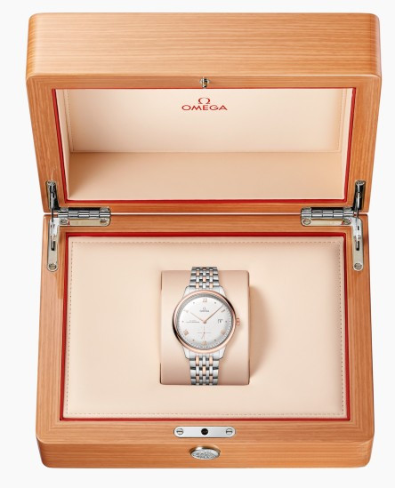 Часы Omega De Ville Prestige Small Seconds 41 представлены в корпусе размером 41 х 10.8 мм из нержавеющей стали и розового золота 18к водонепроницаемостью 30 метров. Внутри корпуса установлен автоматический механизм, Калибр 8802, обладающий запасом хода 55 часов. На серебристом циферблате отображаются часы, минуты, секунды, дата. Часы поставляются на браслете из нержавеющей стали и розового золота 18к.