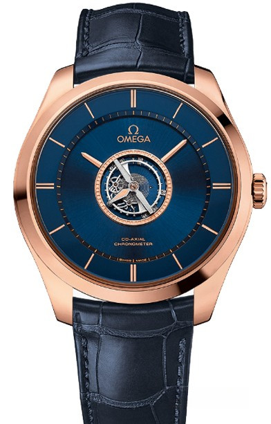 Эти невероятные часы, воплощающие лучшие традиции часового искусства, представляют собой выразительную современную интерпретацию классического турбийона. Новый корпус диаметром 44 мм выполнен из 18-каратного золота Sedna™, которое также послужило материалом для изготовления стрелок, парящих под сапфировым стеклом, и сатинированной секундной стрелки, размещенной на титановом мосте турбийона. Циферблат и внутреннее кольцо изготовлены из 18-каратного золота Sedna™ с радиальным сатинированием и синим PVD-покрытием. Элегантные секундные метки, также выполненные из 18-каратного золота Sedna™, образуют кольцо в "железнодорожном" стиле, нанесенное методом лазерной обработки. Надпись "Co-Axial Chronometer" и символ Ω из 18-каратного золота Sedna™, освобожденные от PVD-покрытия, эффектно выделяются на синем фоне. Великолепные часы, дополненные синим кожаным ремешком с застежкой из 18-каратного золота Sedna™, приводятся в действие эксклюзивным калибром 2638 компании OMEGA. Заднюю крышку часов, на которой указан серийный номер турбийона, украшает медальон с изображением Хроноса, бога времени.