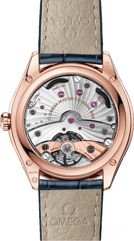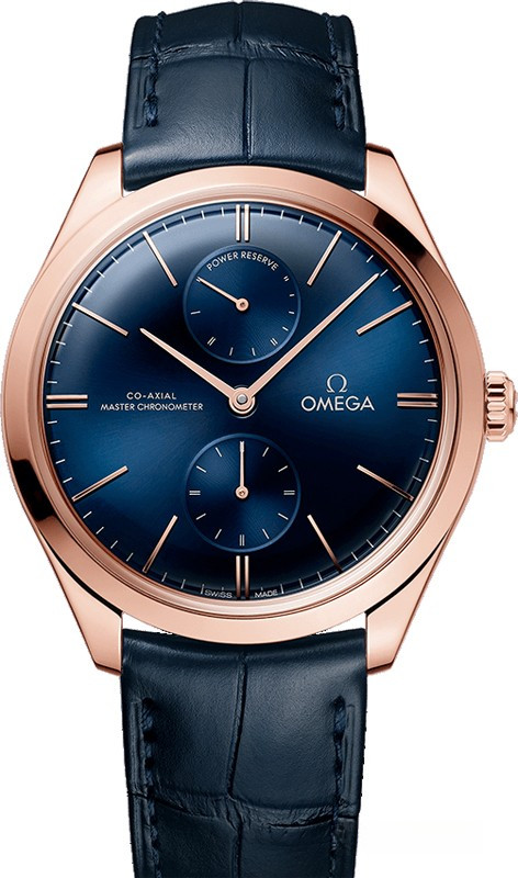 Часы Omega Tresor Master Power Reserve Co-Axial 40 mm представлены в корпусе из розового золота 18к размером 40 мм водонепроницаемостью 30 метров. Внутри корпуса установлен механизм с ручным заводом, Калибр 8934, обладающий запасом хода 72 часа. На синем циферблате отображаются часы, минуты, секунды, запас хода. Часы поставляются на ремешке из кожи аллигатора с вставкой из розового золота 18к.