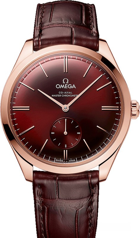 Часы Omega Tresor Master Small Seconds Co-Axial 40 mm представлены в корпусе из розового золота 18к размером 40 мм водонепроницаемостью 30 метров. Внутри корпуса установлен механизм с ручным заводом, Калибр 8926, обладающий запасом хода 72 часа. На бордовом циферблате отображаются часы, минуты, секунды. Часы поставляются на ремешке из кожи аллигатора с вставкой из розового золота 18к.