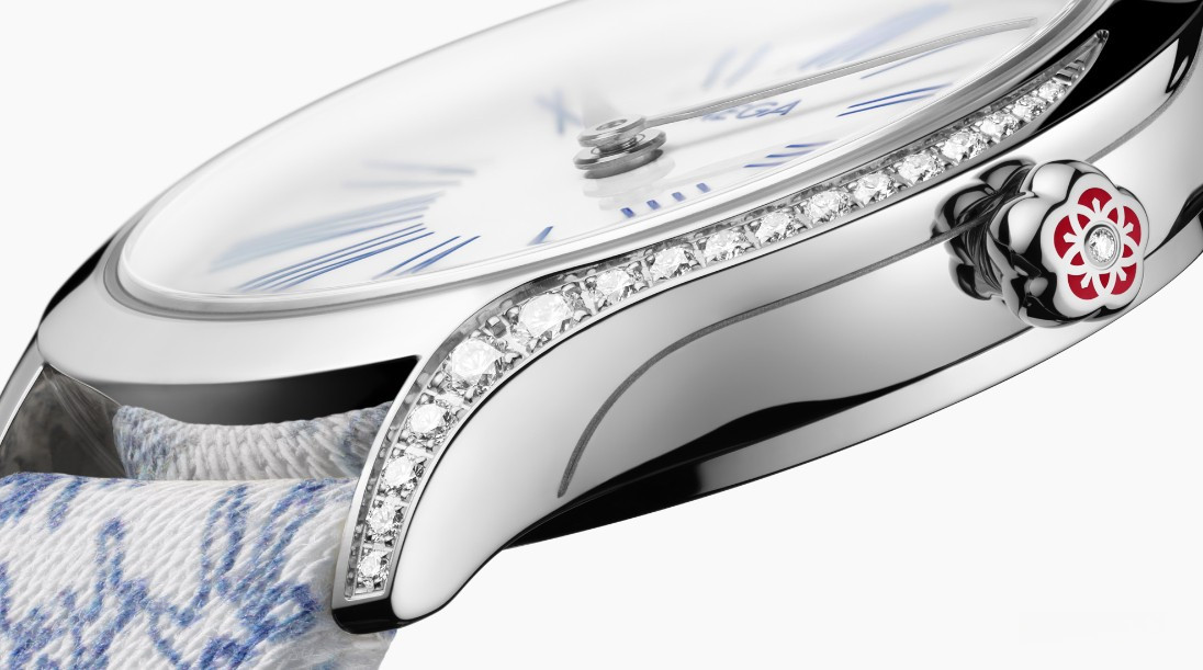 водонепроницаемость 30 м, безель из белых бриллиантов
