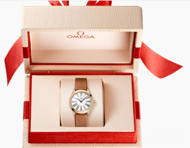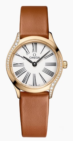 Часы Omega De Ville Mini Tresor представлены в корпусе размером 26 мм из розового золота 18к водонепроницаемостью 30 метров. Внутри корпуса установлен кварцевый механизм. На белом циферблате отображаются часы, минуты. Часы поставляются на кожаном ремешке с застежкой из розового золота 18к. Безель из белых бриллиантов.
