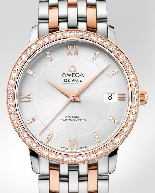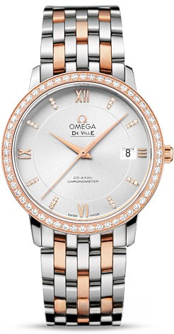 Часы из женской коллекции De Ville Prestige отличаются внешней элегантностью и сдержанностью. Их дизайн с делением циферблата на две зоны решен в стиле, который существует вне времени и, как любая вечная классика, никогда не теряет привлекательности. Современное дизайнерское решение с легким оттенком ретро сочетается в этих часах с инновационными механизмами. Часы De Ville Prestige впечатляют широчайшим выбором конфигураций. Идеальное сочетание серебристого циферблата с делением на две зоны, с корпусом диаметром 36,8 мм из нержавеющей стали и розового золота 18к. Дополняет модель браслет из нержавеющей стали и розового золота 18к. Римские цифры в положениях «3 часа», «6 часов», «9 часов» и «12 часов». Эффектный циферблат с окошком указателя даты в положении «3 часа» защищен от царапин сапфировым стеклом. Основу этой модели составляет коаксиальный Калибр 2500. Эти часы не нуждаются в заводе на протяжении 48 часов. Белые бриллианты украшают циферблат и безель часов.