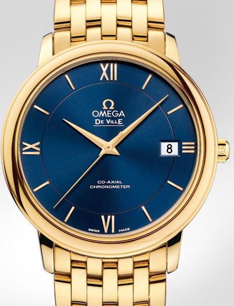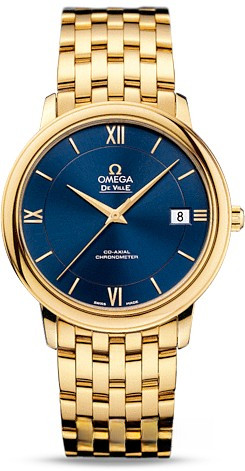 Часы из женской коллекции De Ville Prestige отличаются внешней элегантностью и сдержанностью. Их дизайн с делением циферблата на две зоны решен в стиле, который существует вне времени и, как любая вечная классика, никогда не теряет привлекательности. Современное дизайнерское решение с легким оттенком ретро сочетается в этих часах с инновационными механизмами. Часы De Ville Prestige впечатляют широчайшим выбором конфигураций. Идеальное сочетание синего циферблата с делением на две зоны, с корпусом диаметром 36,8 мм из желтого золота 18к. Дополняет модель браслет из желтого золота 18к. Римские цифры в положениях «3 часа», «6 часов», «9 часов» и «12 часов». Эффектный циферблат с окошком указателя даты в положении «3 часа» защищен от царапин сапфировым стеклом. Основу этой модели составляет коаксиальный Калибр 2500. Эти часы не нуждаются в заводе на протяжении 48 часов.