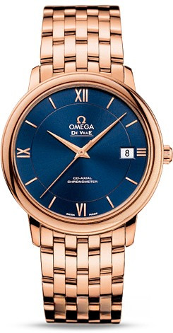 Часы из женской коллекции De Ville Prestige отличаются внешней элегантностью и сдержанностью. Их дизайн с делением циферблата на две зоны решен в стиле, который существует вне времени и, как любая вечная классика, никогда не теряет привлекательности. Современное дизайнерское решение с легким оттенком ретро сочетается в этих часах с инновационными механизмами. Часы De Ville Prestige впечатляют широчайшим выбором конфигураций. Идеальное сочетание синего циферблата с делением на две зоны, с корпусом диаметром 36,8 мм из розового золота 18к. Дополняет модель браслет из розового золота 18к. Римские цифры в положениях «3 часа», «6 часов», «9 часов» и «12 часов». Эффектный циферблат с окошком указателя даты в положении «3 часа» защищен от царапин сапфировым стеклом. Основу этой модели составляет коаксиальный Калибр 2500. Эти часы не нуждаются в заводе на протяжении 48 часов.