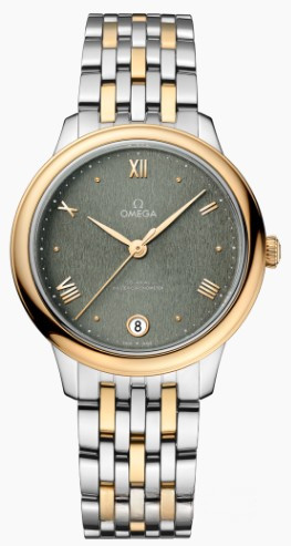 Часы Omega De Ville Prestige Co-Axial Master Chronometer 34 mm представлены в корпусе размером 34 х 10.1 мм из нержавеющей стали и желтого золота 18к водонепроницаемостью 30 метров. Внутри корпуса установлен автоматический механизм, Калибр 8800, обладающий запасом хода 55 часов. На сером циферблате отображаются часы, минуты, секунды, дата. Часы поставляются на браслете из нержавеющей стали и желтого золота 18к.