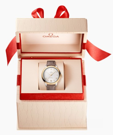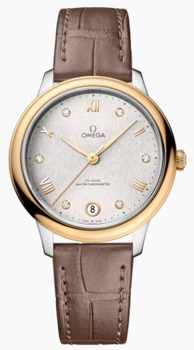 Часы Omega De Ville Prestige Co-Axial Master Chronometer 34 mm представлены в корпусе размером 34 х 10.1 мм из нержавеющей стали и желтого золота 18к водонепроницаемостью 30 метров. Внутри корпуса установлен автоматический механизм, Калибр 8800, обладающий запасом хода 55 часов. На серебристом циферблате с 6-ю белыми бриллиантами отображаются часы, минуты, секунды, дата. Часы поставляются на ремешке из кожи аллигатора с застежкой из нержавеющей стали.