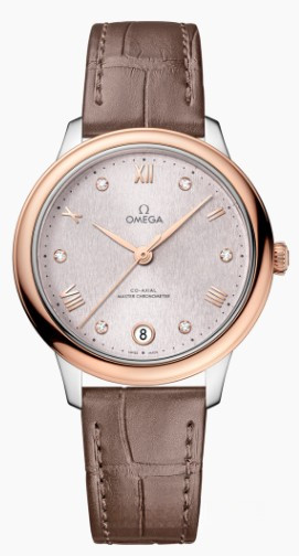 Часы Omega De Ville Prestige Co-Axial Master Chronometer 34 mm представлены в корпусе размером 34 х 10.1 мм из нержавеющей стали и розового золота 18к водонепроницаемостью 30 метров. Внутри корпуса установлен автоматический механизм, Калибр 8800, обладающий запасом хода 55 часов. На серебристом циферблате с 6-ю белыми бриллиантами отображаются часы, минуты, секунды, дата. Часы поставляются на ремешке из кожи аллигатора с застежкой из нержавеющей стали.