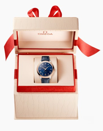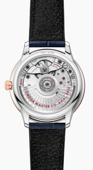 Часы Omega De Ville Prestige Co-Axial Master Chronometer 34 mm представлены в корпусе размером 34 х 10.1 мм из нержавеющей стали и розового золота 18к водонепроницаемостью 30 метров. Внутри корпуса установлен автоматический механизм, Калибр 8800, обладающий запасом хода 55 часов. На синем циферблате с 6-ю белыми бриллиантами отображаются часы, минуты, секунды, дата. Часы поставляются на ремешке из кожи аллигатора с застежкой из нержавеющей стали.