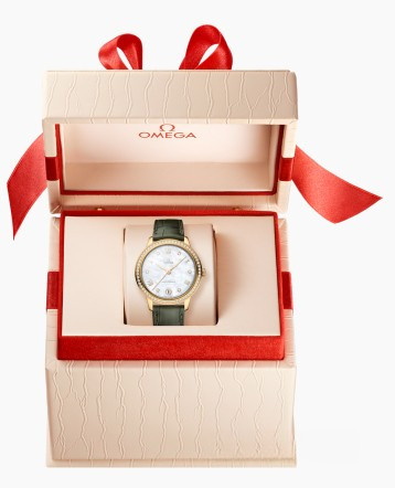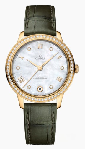 Часы Omega De Ville Prestige Co-Axial Master Chronometer 34 mm представлены в корпусе размером 34 х 10.1 мм из розового золота18 к водонепроницаемостью 30 метров. Внутри корпуса установлен автоматический механизм, Калибр 8800, обладающий запасом хода 55 часов. На белом жемчужном циферблате с 6-ю белыми бриллиантами отображаются часы, минуты, секунды, дата. Часы поставляются на ремешке из кожи аллигатора с застежкой из розового золота 18к.