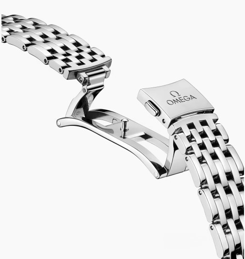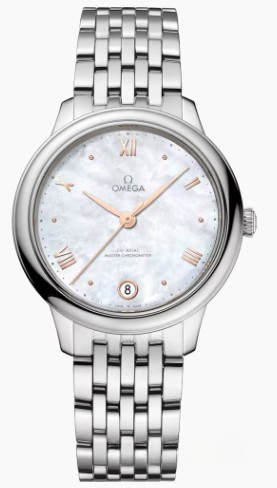Часы Omega De Ville Prestige Co-Axial Master Chronometer 34 mm представлены в корпусе размером 34 х 10.1 мм из нержавеющей стали водонепроницаемостью 30 метров. Внутри корпуса установлен автоматический механизм, Калибр 8800, обладающий запасом хода 55 часов. На белом жемчужном циферблате отображаются часы, минуты, секунды, дата. Часы поставляются на браслете из нержавеющей стали.