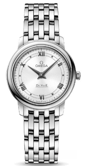 Коллекция OMEGA De Ville Prestige привлекает внимание элегантным классическим дизайном. Часы характеризует строгий стиль и роскошная вневременная отделка. Эта модель имеет белый циферблат с часовыми метками в виде полированных римских цифр и кабошонами. Эффектный циферблат с чернеными элементами защищен устойчивым к царапинам сапфировым стеклом. Корпус диаметром 27,4 мм из нержавеющей стали дополняет полированный браслет Prestige. Часы оснащены часовым механизмом OMEGA, калибром 1376.