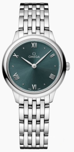Часы Omega De Ville Prestige Quartz 27.5 mm представлены в корпусе из нержавеющей стали размером 27.5 х 6.3 мм и водонепроницаемостью 30 метров. Внутри корпуса установлен кварцевый механизм, Калибр Omega 4061. На зеленом циферблате отображаются часы, минуты. Часы поставляются на браслете из нержавеющей стали.
