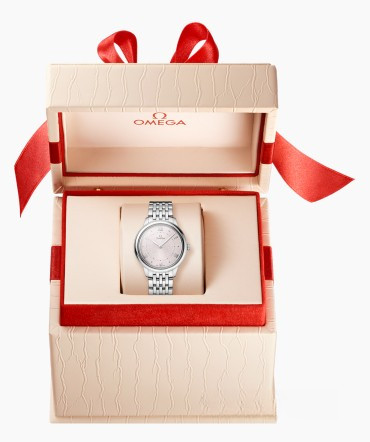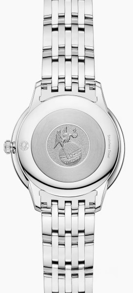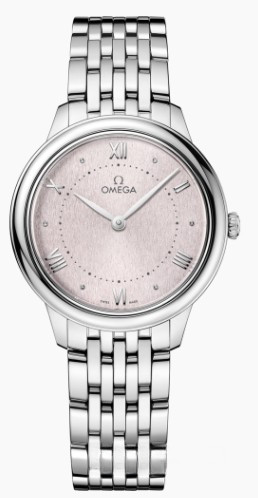 Часы Omega De Ville Prestige Quartz 30 mm представлены в корпусе из нержавеющей стали размером 30 х 7.3 мм и водонепроницаемостью 30 метров. Внутри корпуса установлен кварцевый механизм, Калибр Omega 4061. На розовом циферблате отображаются часы, минуты. Часы поставляются на браслете из нержавеющей стали.