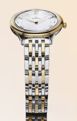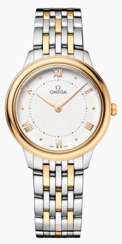 Часы Omega De Ville Prestige Quartz 30 mm представлены в корпусе из нержавеющей стали и желтого золота 18к размером 30 х 7.3 мм и водонепроницаемостью 30 метров. Внутри корпуса установлен кварцевый механизм, Калибр Omega 4061. На серебристом циферблате отображаются часы, минуты. Часы поставляются на браслете из нержавеющей стали и желтого золота 18к.