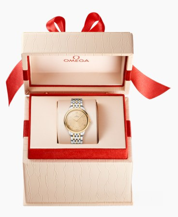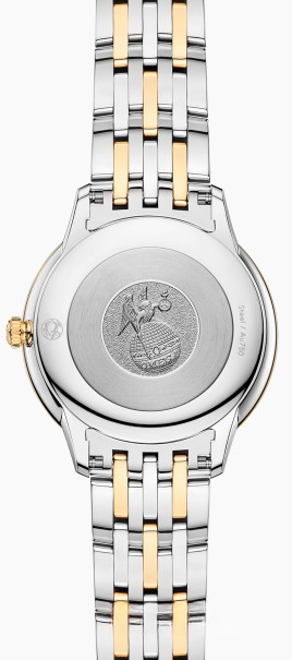 Часы Omega De Ville Prestige Quartz 30 mm представлены в корпусе из нержавеющей стали и желтого золота 18к размером 30 х 7.3 мм и водонепроницаемостью 30 метров. Внутри корпуса установлен кварцевый механизм, Калибр Omega 4061. На золотистом циферблате отображаются часы, минуты. Часы поставляются на браслете из нержавеющей стали и желтого золота 18к.