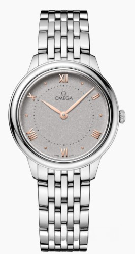Часы Omega De Ville Prestige Quartz 30 mm представлены в корпусе из нержавеющей стали размером 30 х 7.3 мм и водонепроницаемостью 30 метров. Внутри корпуса установлен кварцевый механизм, Калибр Omega 4061. На сером циферблате отображаются часы, минуты. Часы поставляются на браслете из нержавеющей стали.