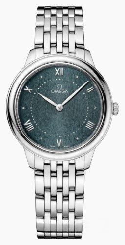 Часы Omega De Ville Prestige Quartz 30 mm представлены в корпусе из нержавеющей стали размером 30 х 7.3 мм и водонепроницаемостью 30 метров. Внутри корпуса установлен кварцевый механизм, Калибр Omega 4061. На зеленом циферблате отображаются часы, минуты. Часы поставляются на браслете из нержавеющей стали.