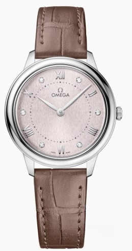 Часы Omega De Ville Prestige Quartz 30 mm представлены в корпусе из нержавеющей стали размером 30 х 7.3 мм и водонепроницаемостью 30 метров. Внутри корпуса установлен кварцевый механизм, Калибр Omega 4061. На серебристом циферблате с 6-ю белыми бриллиантами отображаются часы, минуты. Часы поставляются на ремешке из кожи аллигатора с застежкой из нержавеющей стали.