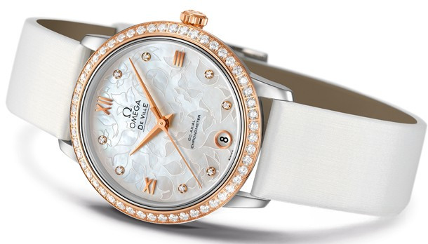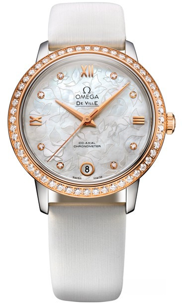 Часы Prestige Butterfly Automatic Date White MOP имеют белый гильошированный жемчужный циферблат со стрелками из 18-каратного розового золота. Безель часов инкрустирован белыми бриллиантами. Сатинированный и полированный корпус диаметром 32.7 мм из нержавеющей стали и розового золота 18к дополняет атласный ремешшок с застежкой из нержавеющей стали. Апертура даты располоена на 6-ти часах. 8 белых бриллиантов расположены на местах часовых меток. Внутри корпуса установлен автоматический механизм Omega 2500 с запасом хода 48 часов. Часы являются официальным хронометром COSC. Водонепроницаемость корпуса до 30 метров.