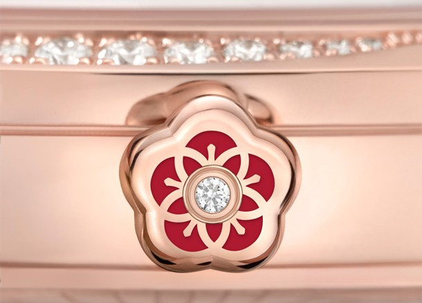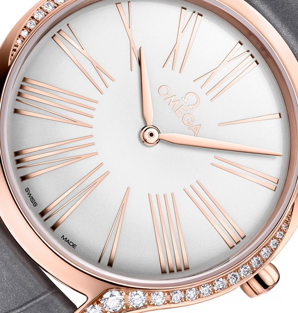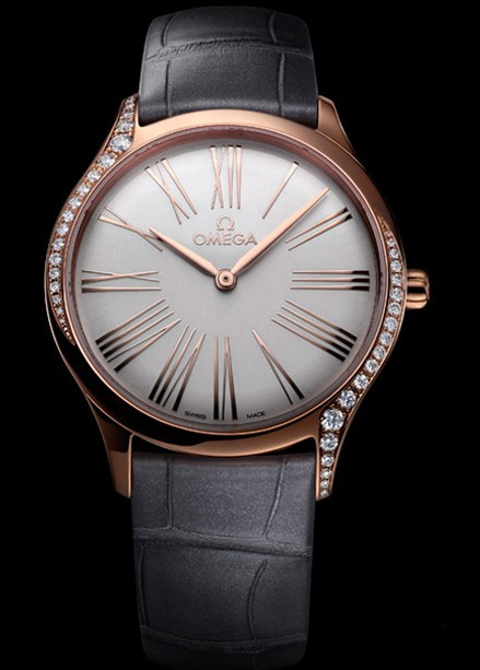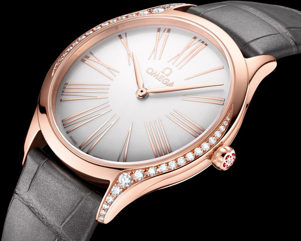 Часы Trésor с корпусом классической формы из розового золота 18к обладают размером 39 х 9.75 мм. Водонепроницаемость корпуса составляет 30 метров. Внутри находится кварцевый механизм Omega. На серебристом циферблате отображаются крупные римские цифры, по центру находятся часовая и минутная стрелки. Часы поставляются на ремешке из кожи аллигатора с вставкой из розового золота 18к. Корпус инкрустирован белыми бриллиантами.