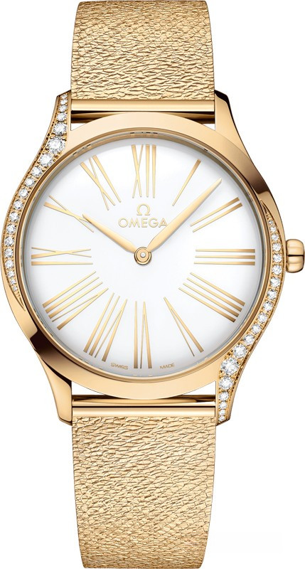 Часы Trésor с корпусом классической формы из розового золота 18к обладают размером 36 мм. Водонепроницаемость корпуса составляет 30 метров. Внутри находится кварцевый механизм Omega. На серебристом циферблате отображаются крупные римские цифры, по центру находятся часовая и минутная стрелки. Часы поставляются на браслете из розового золота 18к. Корпус инкрустирован белыми бриллиантами.