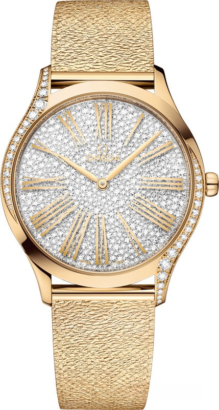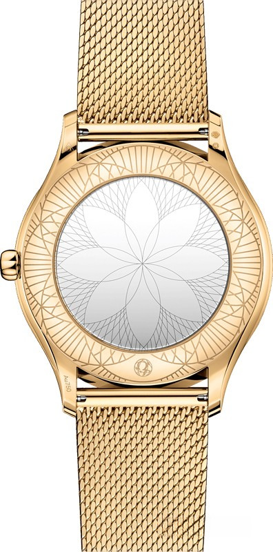 Часы Trésor с корпусом классической формы из розового золота 18к обладают размером 36 мм. Водонепроницаемость корпуса составляет 30 метров. Внутри находится кварцевый механизм Omega. На циферблате из белых бриллиантов отображаются крупные римские цифры, по центру находятся часовая и минутная стрелки. Часы поставляются на браслете из розового золота 18к. Корпус инкрустирован белыми бриллиантами.
