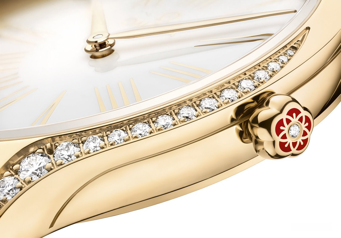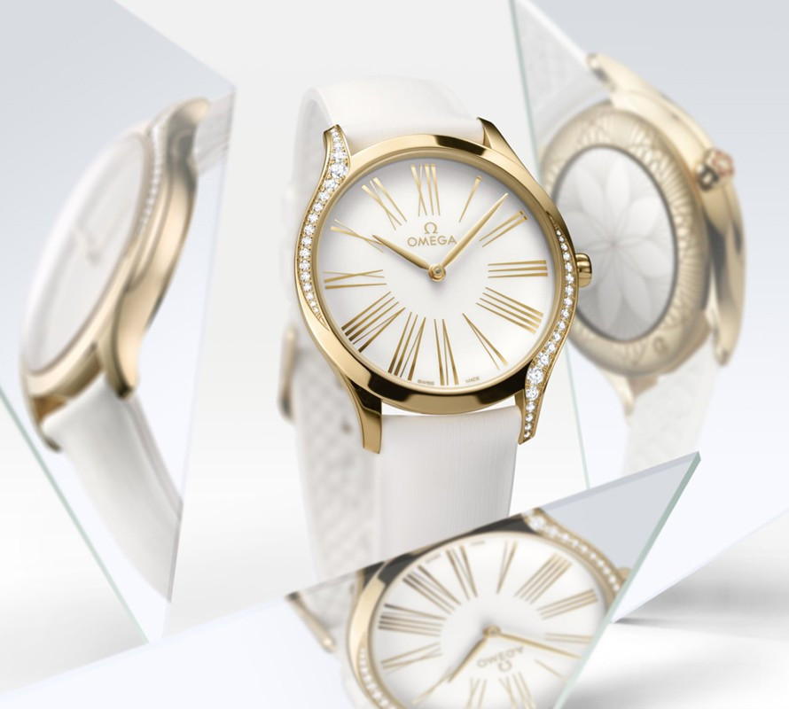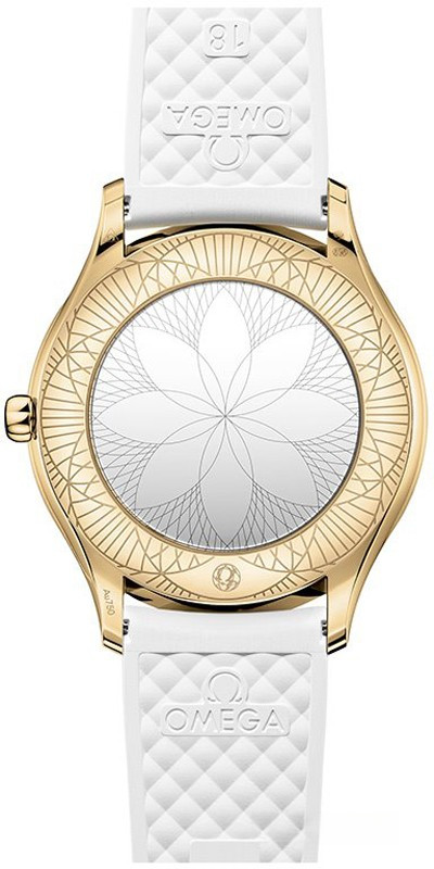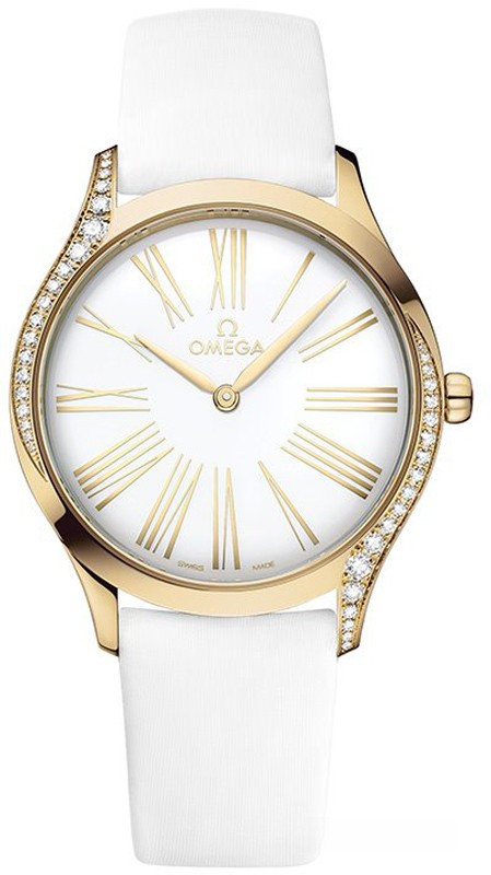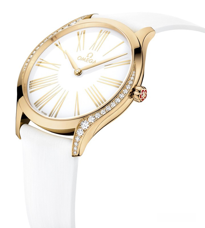 Часы Trésor с корпусом классической формы из розового золота 18к обладают размером 36 мм. Водонепроницаемость корпуса составляет 30 метров. Внутри находится кварцевый механизм Omega. На белом циферблате отображаются крупные римские цифры, по центру находятся часовая и минутная стрелки. Часы поставляются на каучуковом ремешке с вставкой из розового золота 18к. Корпус инкрустирован белыми бриллиантами.