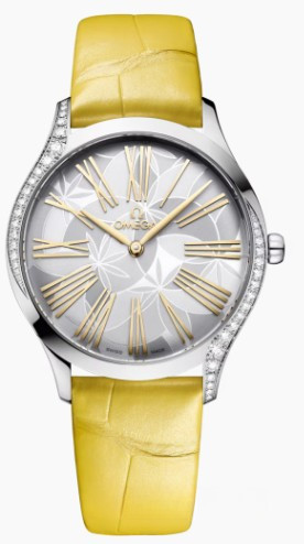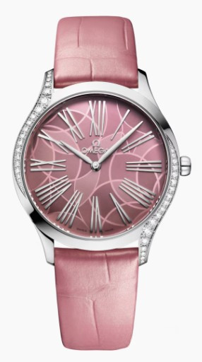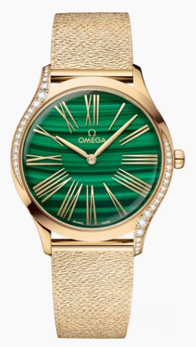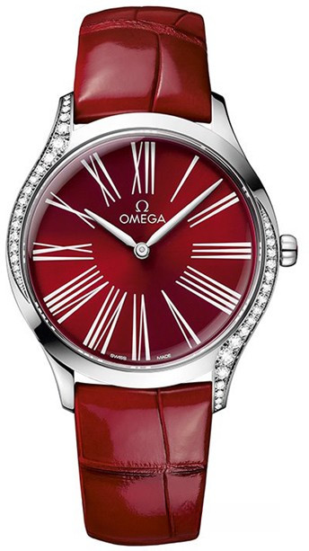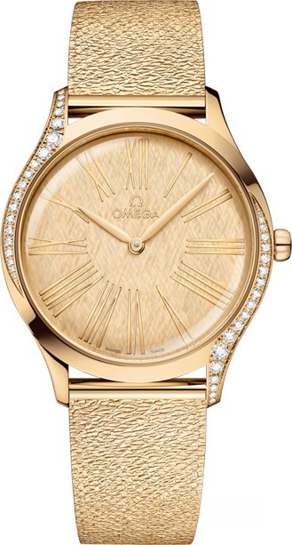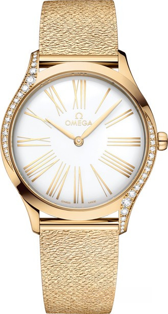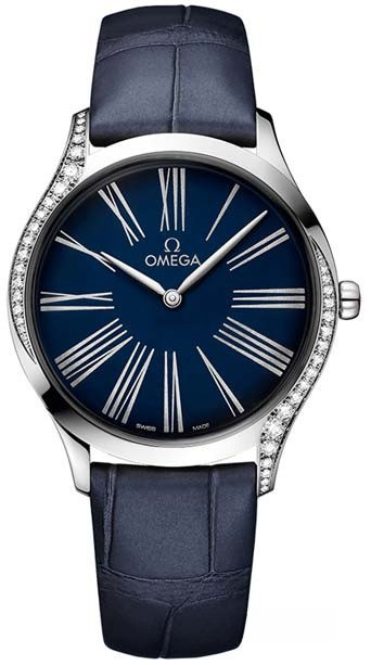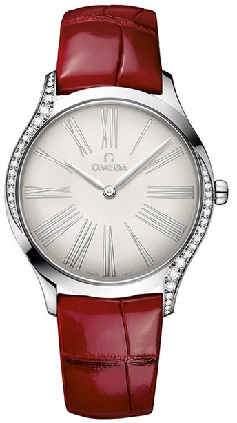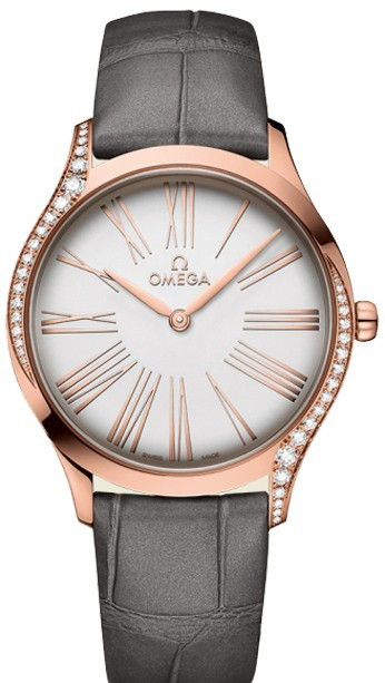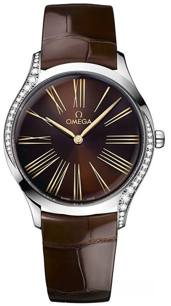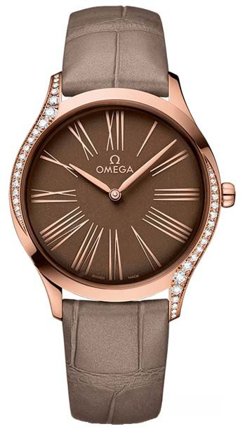 Часы Trésor с корпусом классической формы из розового золота 18к обладают размером 36 мм. Водонепроницаемость корпуса составляет 30 метров. Внутри находится кварцевый механизм Omega. На коричневом циферблате отображаются крупные римские цифры, по центру находятся часовая и минутная стрелки. Часы поставляются на ремешке из кожи аллигатора с вставкой из розового золота 18к. Корпус инкрустирован белыми бриллиантами.