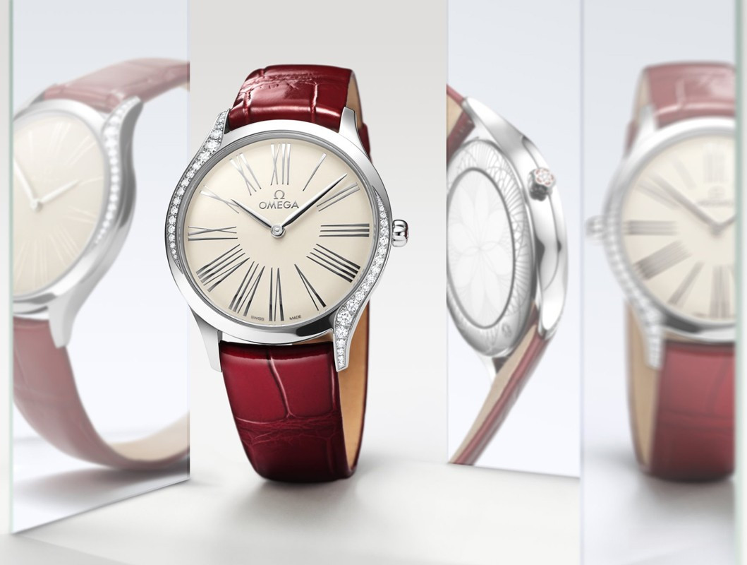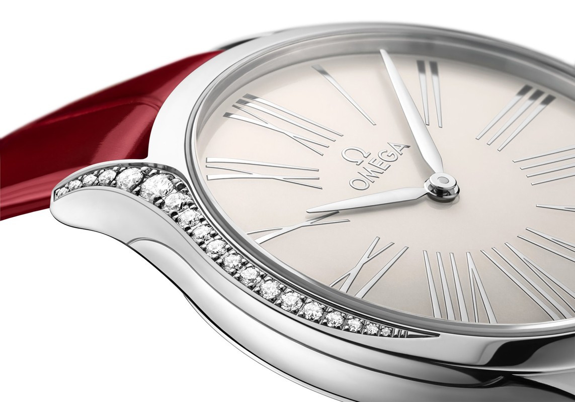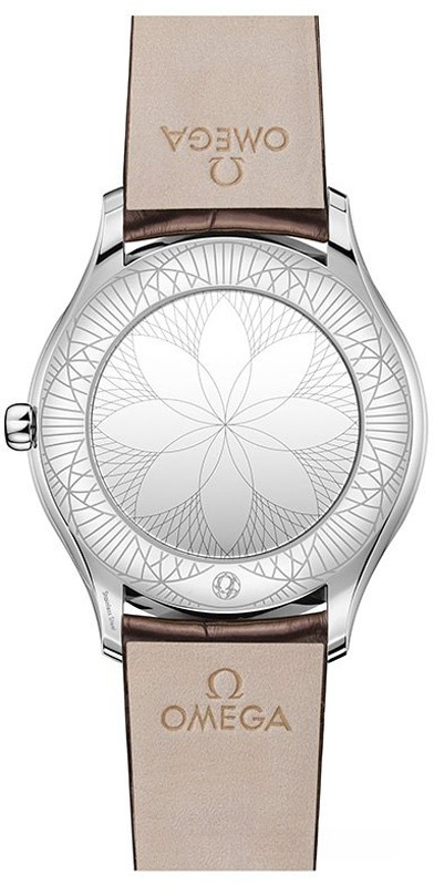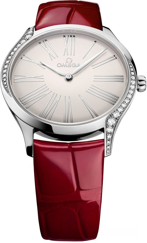 Часы Trésor с корпусом классической формы из нержавеющей стали обладают размером 36 мм. Водонепроницаемость корпуса составляет 30 метров. Внутри находится кварцевый механизм Omega. На серебристом циферблате отображаются крупные римские цифры, по центру находятся часовая и минутная стрелки. Часы поставляются на ремешке из кожи аллигатора с вставкой из нержавеющей стали. Корпус инкрустирован белыми бриллиантами.