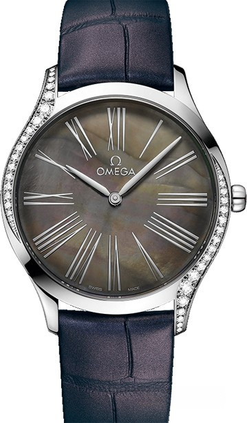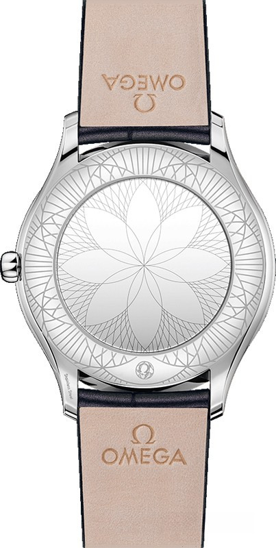 Часы Trésor с корпусом классической формы из нержавеющей стали обладают размером 36 мм. Водонепроницаемость корпуса составляет 30 метров. Внутри находится кварцевый механизм Omega. На черном жемчужном циферблате отображаются крупные римские цифры, по центру находятся часовая и минутная стрелки. Часы поставляются на ремешке из кожи аллигатора с вставкой из нержавеющей стали. Корпус инкрустирован белыми бриллиантами.