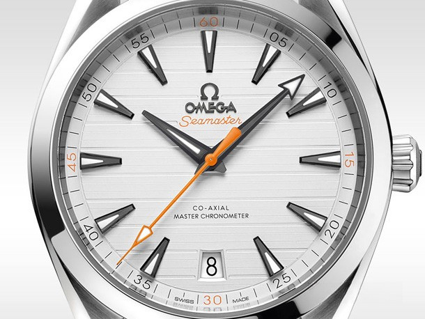 Корпус новых часов Aqua Terra представлен в нержавеющей стали. Окошко указателя даты было смещено с отметки "3 часа" в положение "6 часов". Циферблат новых часов Aqua Terra 150 м отличается чистотой и лаконичностью: специалисты Omega убрали с него надпись "water-resistance" и поместили ее в виде гравировки на заднюю крышку. Новая заводная головка конической формы дополняет эффектный облик, вдохновленный дизайном задней крышки с волнообразным краем. Главной особенностью часов Aqua Terra 150 м является специфическая отделка циферблата, напоминающая тиковое покрытие роскошных яхт. В отличие от предыдущих моделей, циферблат новых версий украшает узор, который образуется не из вертикальных, а из горизонтальных линий. Задняя крышка с ячейками украшена волнообразным мотивом. Сквозь заднюю крышку из сапфирового стекла можно наблюдать за безупречной работой часового механизма Omega Master Chronometer, калибр 8900.