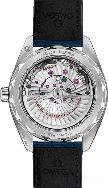 Великолепные часы Seamaster Aqua Terra воздают должное богатому морскому наследию OMEGA. Симметричный корпус этой модели диаметром 41 мм выполнен из нержавеющей стали. Задняя крышка имеет характерный дизайн с волнообразным краем. Синий циферблат с отделкой "солнечные лучи" украшает горизонтальный узор "тиковое дерево", напоминающий обшивку роскошных яхт. В положении "6 часов" располагается окошко указателя даты. Стрелки и индексы с родиевым покрытием заполнены белым люминесцентным составом Super-LumiNova. Часы на кожаном ремешке синего цвета оснащены механизмом OMEGA Master Chronometer 8900, который был испытан на соответствие высочайшим стандартам качества и сертифицирован Швейцарским федеральным институтом метрологии (METAS).