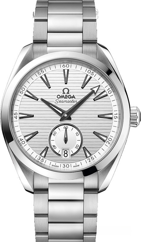 Часы Omega Seamaster Aqua Terra Small Seconds представлены в корпусе из нержавеющей стали размером 41 х 13.5 мм водонепроницаемостью 150 метров. Внутри корпуса находится автоматический механизм, Калибр Omega 8917, обладающий запасом хода 60 часов. На серебристом гильошированном циферблате отображаются часы, минуты, секунды, дата. Часы поставляются на браслете из нержавеющей стали.