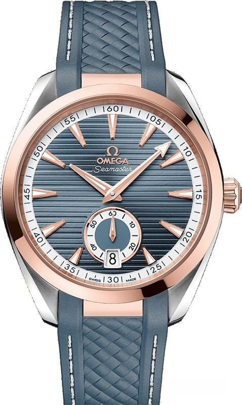 Часы Omega Seamaster Aqua Terra Small Seconds представлены в корпусе из нержавеющей стали и розового золота 18к размером 41 х 13.5 мм водонепроницаемостью 150 метров. Внутри корпуса находится автоматический механизм, Калибр Omega 8917, обладающий запасом хода 60 часов. На сером гильошированном циферблате отображаются часы, минуты, секунды, дата. Часы поставляются на каучуковом ремешке с застежкой из нержавеющей стали.
