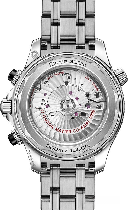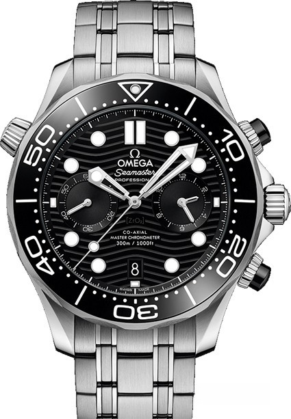 Часы Omega Seamaster Diver 300 m Omega Co-Axial Master Chronometer Chronograph 44 mm представлены в корпусе из нержавеющей стали размером 44 мм и водонепроницаемостью 300 метров. На черном гильошированном циферблате отображаются часы, минуты, секунды, дата, накопители хронографа. Апертура даты расположена на 6-ти часах. Внутри корпуса установлен автоматический механизм 9901 с запасом хода 60 часов. Безель часов вращающийся. Часы комплектуются браслетом из нержавеющей стали.