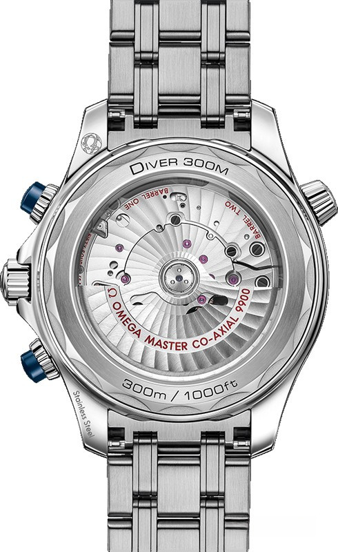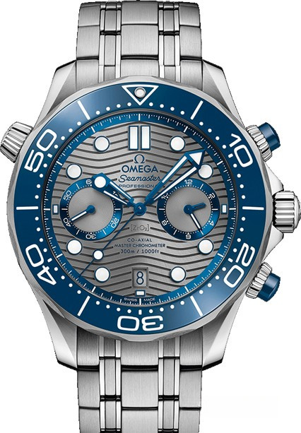 Часы Omega Seamaster Diver 300 m Omega Co-Axial Master Chronometer Chronograph 44 mm представлены в корпусе из нержавеющей стали размером 44 мм и водонепроницаемостью 300 метров. На сером гильошированном циферблате отображаются часы, минуты, секунды, дата, накопители хронографа. Апертура даты расположена на 6-ти часах. Внутри корпуса установлен автоматический механизм 9901 с запасом хода 60 часов. Безель часов вращающийся. Часы комплектуются браслетом из нержавеющей стали.