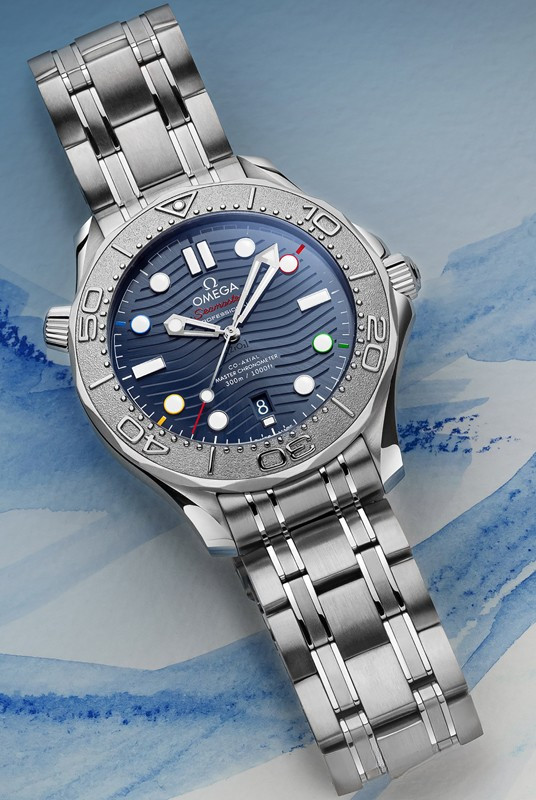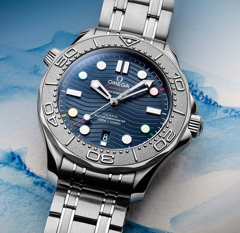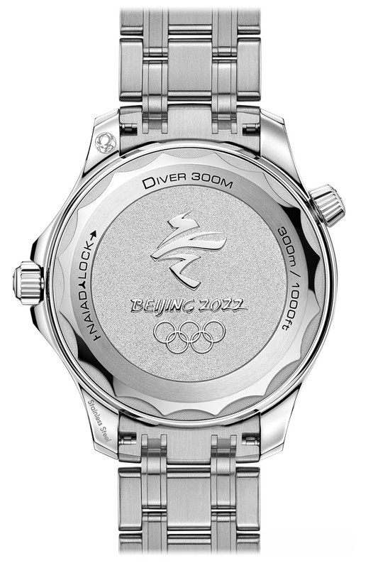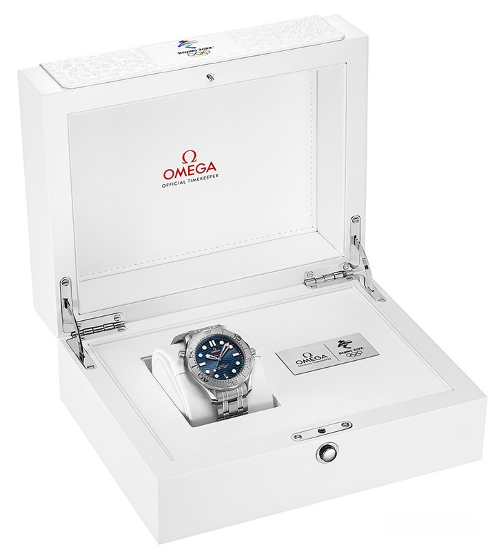 Часы Omega Seamaster Diver 300M Beijing 2022 Special Edition представлены в корпусе из нержавеющей стали размером 42 х 14 мм и водонепроницаемостью до 300 метров. Внутри корпуса установлен автоматический механизм, Калибр Omega 8800 с запасом хода 55 часов. На синем циферблате отображаются часы, минуты,секунды, дата. Часы комплектуются браслетом из нержавеющей стали.