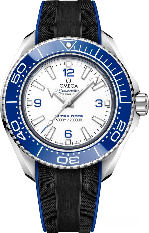 Часы Omega Seamaster Planet Ocean 6000m Ultra Deep представлены в корпусе из нержавеющей стали размером 45.5 х 18.1 мм водонепроницаемостью 6000 метров. Внутри корпуса установлен автоматический механизм, Калибр 8912, обладающий запасом хода 60 часов. На белом циферблате отображаются часы, минуты, секунды. Часы поставляются на каучуковом ремешке с застежкой из нержавеющей стали.