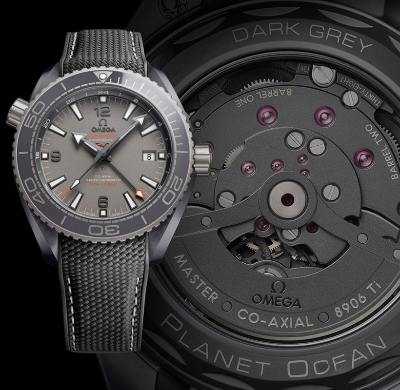 Часы Omega Seamaster Planet Ocean 600m Co-Axial Master Chronometer GMT представлены в корпусе размером 44 мм из керамика водонепроницаемостью 600 метров. Внутри корпуса установлен автоматический механизм, Калибр 8906, обладающий запасом хода 60 часов. На сером циферблате отображаются часы, минуты, секунда, дата, время второго часового пояса.Часы поставляются на каучуковом ремешке с титановой застежкой.