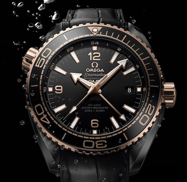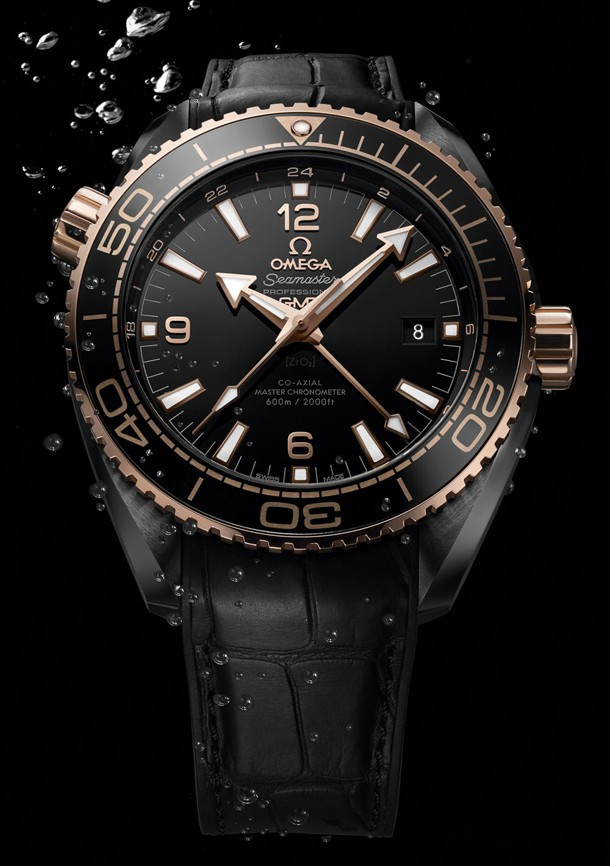 Модель имеет круглый корпус, изготовленный из черной керамики и розового золота 18к, диаметром 45.5 мм, водонепроницаемый до 600 метров. Вращающийся однонаправленный керамический дайверский безель. На 10 часах размещен гелиевый клапан. Сапфировое стекло с антибликовым покрытием установлено на передней стороне корпуса и на его завинчивающейся задней крышке. Циферблат выполнен из черной керамики, с накладными арабскими цифрами и часовыми индексами, покрытыми, как и стрелки, люминесцентным составом SuperLumiNova белого цвета. Внутри корпуса установлен мануфактурный швейцарский автоматический коаксиальный механизм Omega 8906, с двумя заводными барабанами, 60-часовым запасом хода, кремниевой спиралью, функциями индикации часов, минут, секунд, даты и времени второго часового пояса. Калибр официально сертифицирован Swiss Federal Institute of Metrology (METAS) в качестве Master Chronometer. Устойчив к воздействию магнитных полей, достигающих 15000 Гс. Калибр отлично отделан и декорирован. Новинка комплектуется черным ремешком из кожи аллигатора.