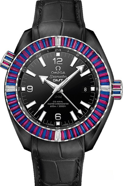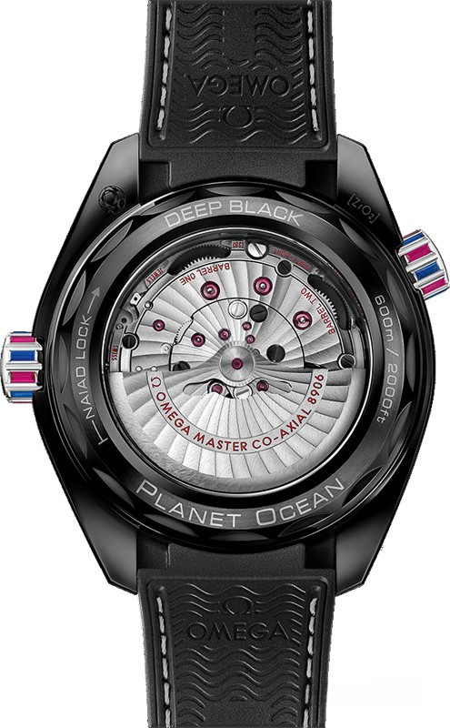 Модель имеет круглый корпус, изготовленный из черной керамики и платины 950, диаметром 45.5 мм, водонепроницаемый до 600 метров. Вращающийся однонаправленный дайверский безель с белыми багетными бриллиантами, красными багетными рубинами и синими багетными сапфирами. На 10 часах размещен гелиевый клапан. Сапфировое стекло с антибликовым покрытием установлено на передней стороне корпуса и на его завинчивающейся задней крышке. Циферблат выполнен из черной керамики, с накладными арабскими цифрами и часовыми индексами, покрытыми, как и стрелки, люминесцентным составом SuperLumiNova белого цвета. Внутри корпуса установлен мануфактурный швейцарский автоматический коаксиальный механизм Omega 8906, с двумя заводными барабанами, 60-часовым запасом хода, кремниевой спиралью, функциями индикации часов, минут, секунд, даты и времени второго часового пояса. Калибр официально сертифицирован Swiss Federal Institute of Metrology (METAS) в качестве Master Chronometer. Устойчив к воздействию магнитных полей, достигающих 15000 Гс. Калибр отлично отделан и декорирован. Новинка комплектуется черным ремешком из кожи аллигатора.