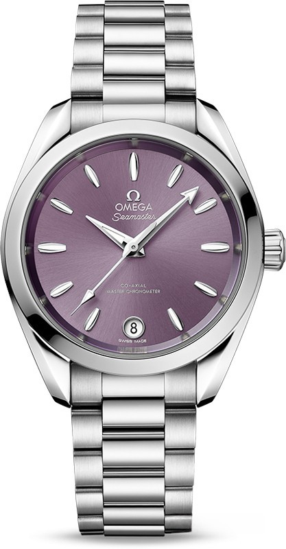 Женские часы Seamaster Aqua Terra являют собой образец истинной элегантности. Симметричный корпус этой модели диаметром 34 мм выполнен из нержавеющей стали. На фиолетовом циферблате располагаются часовая, минутная и секундная стрелки, индикатор даты. Эти часы, оснащенные Калибром Omega Co-Axial Master Chronometer 8800, сертифицированы Швейцарским федеральным институтом метрологии (METAS) в соответствии с высочайшими стандартами часовой индустрии. Они предлагаются с браслетом из нержавеющей стали.