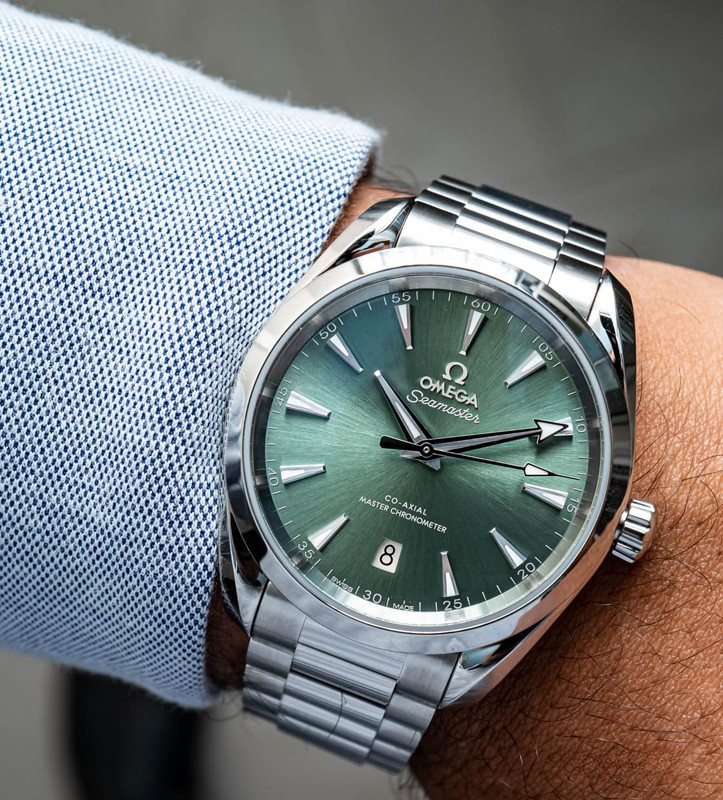 Часы Omega Seamaster Aqua Terra Small Seconds представлены в корпусе из нержавеющей стали размером 38 х 19 мм водонепроницаемостью 150 метров. Внутри корпуса находится автоматический механизм, Калибр Omega 8800, обладающий запасом хода 55 часов. На зеленом циферблате отображаются часы, минуты, секунды, дата. Часы поставляются на браслете из нержавеющей стали.